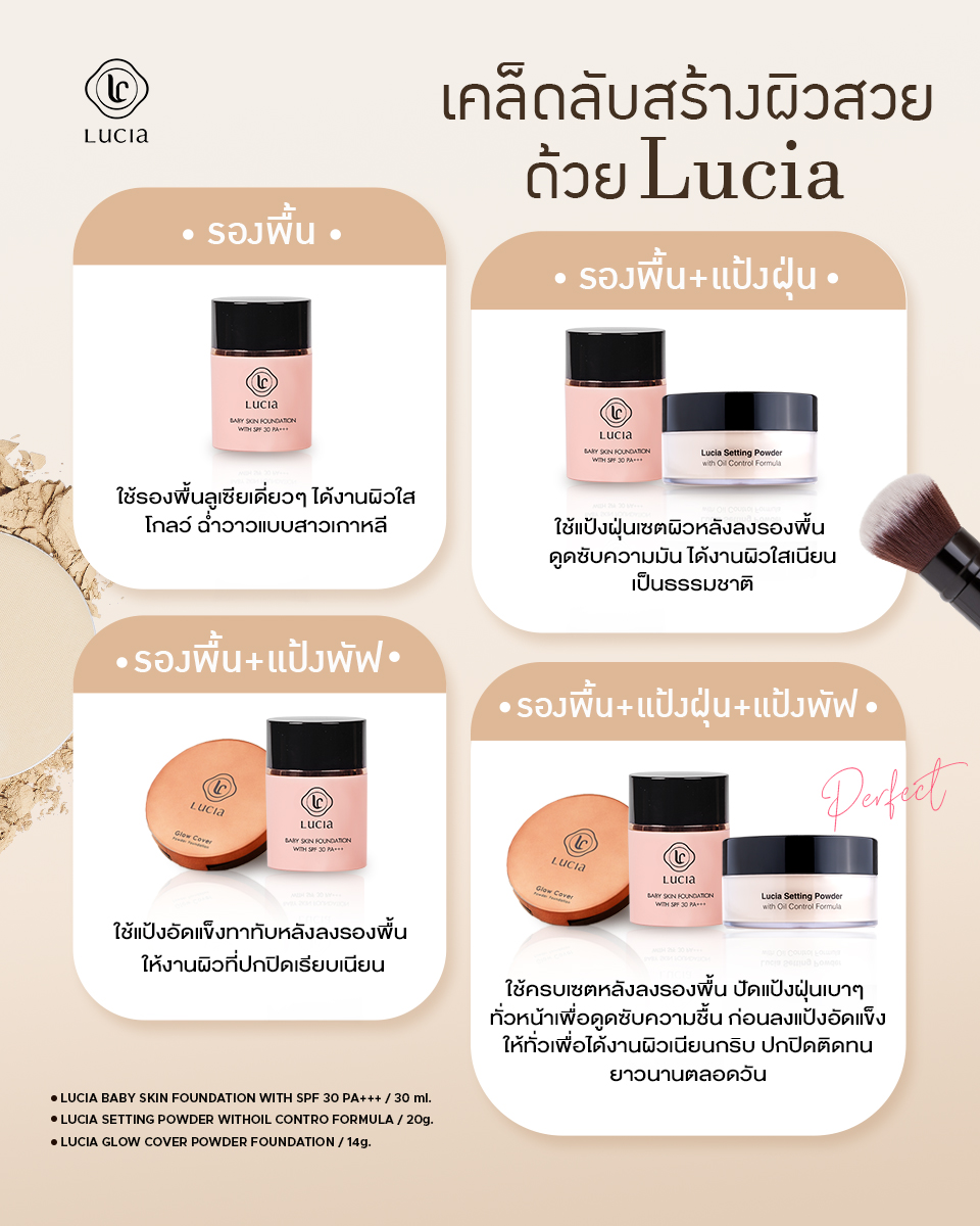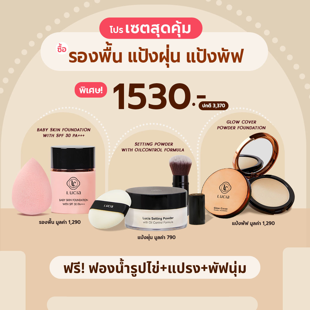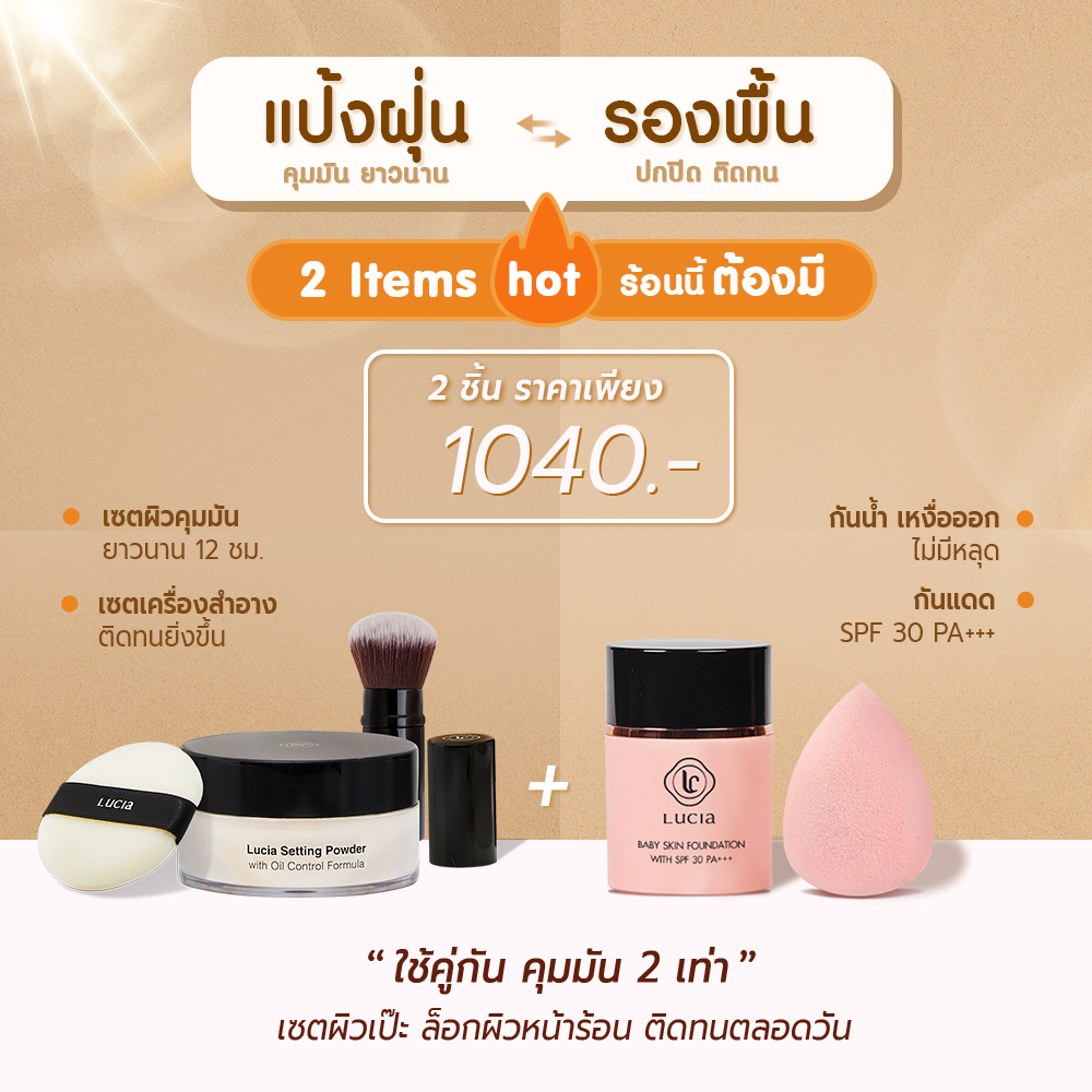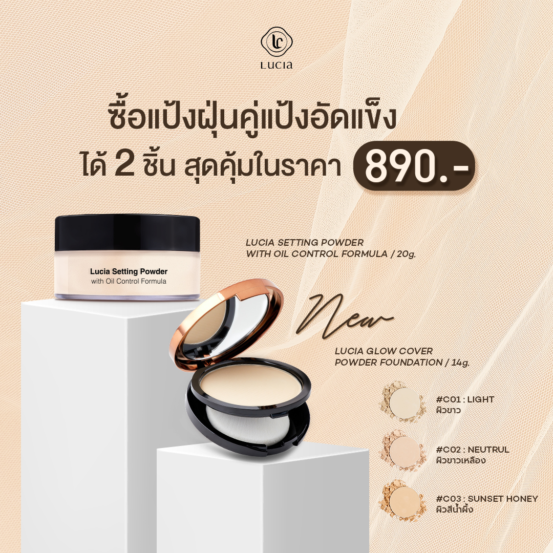 เซตรองพื้นคู่แป้งฝุ่นลูเซีย เฉด #C02 & #T02 สำหรับผิวขาวเหลือง