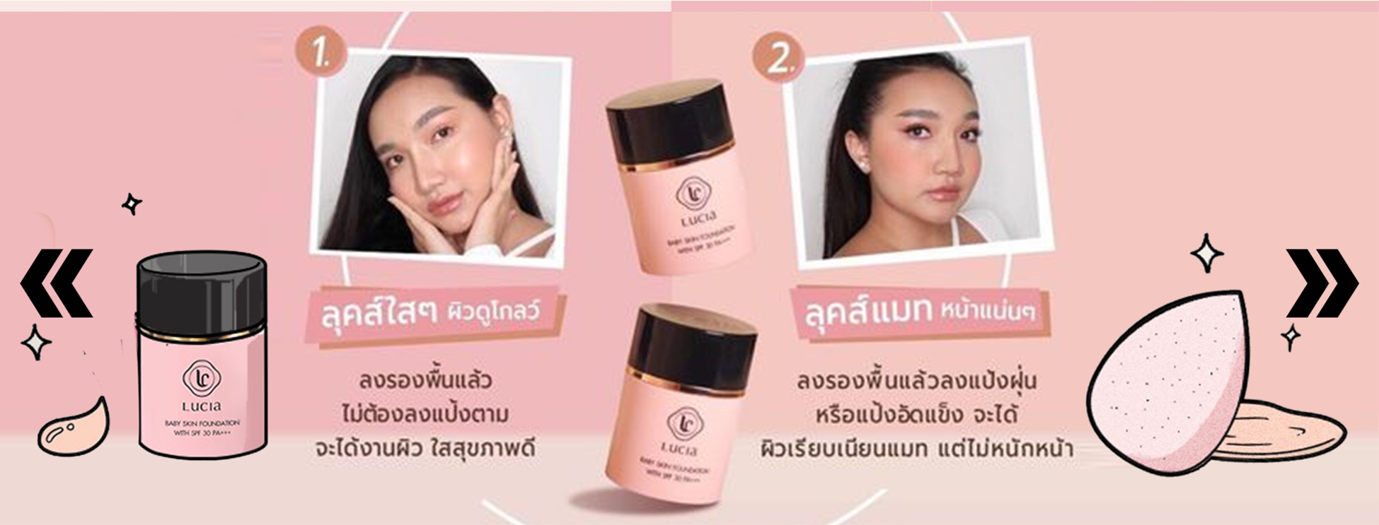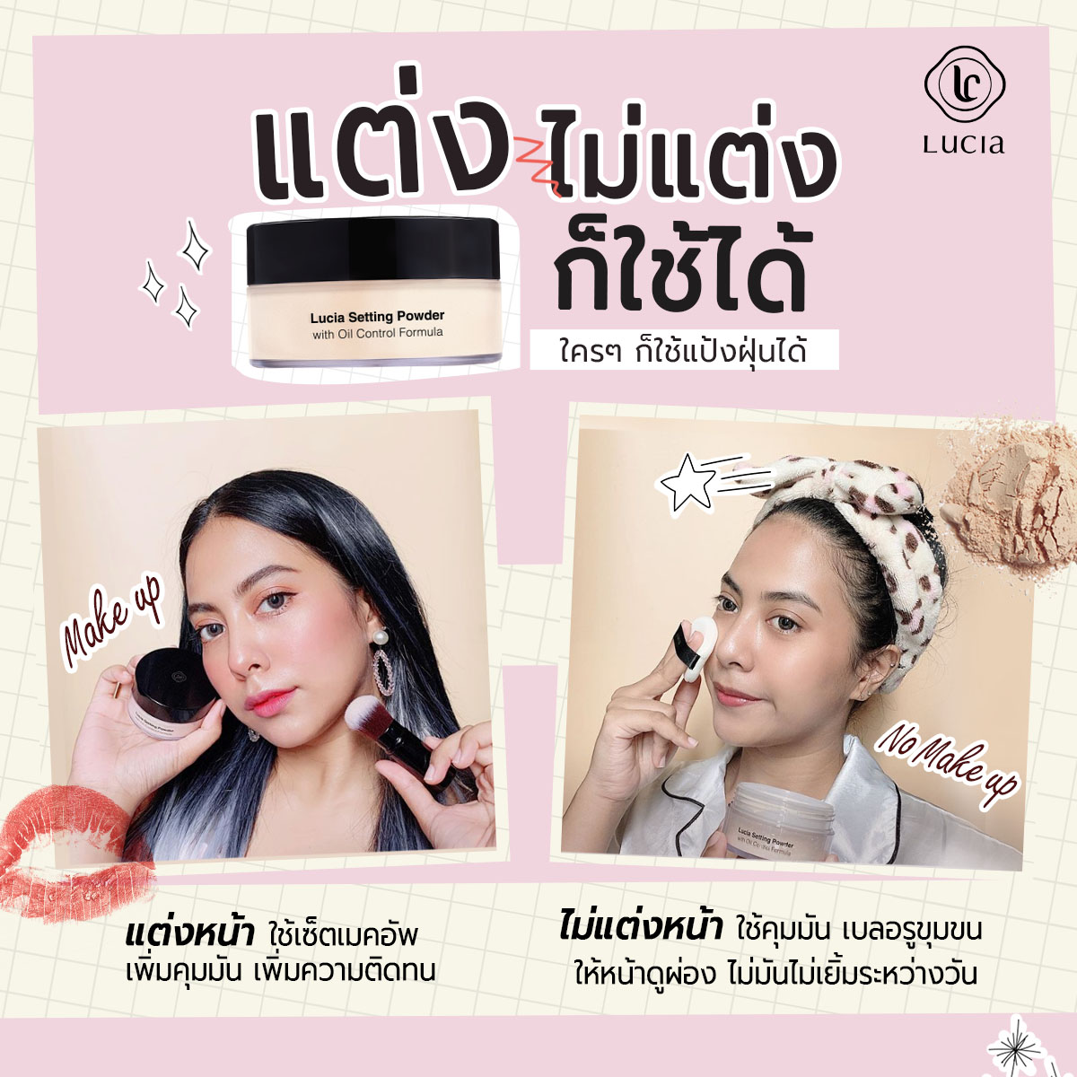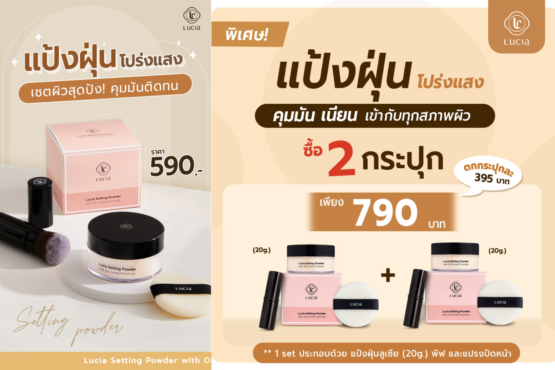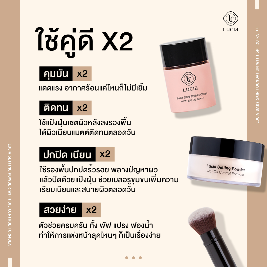 เซตรองพื้นคู่แป้งฝุ่นลูเซีย เฉด #C02 & #T02 สำหรับผิวขาวเหลือง