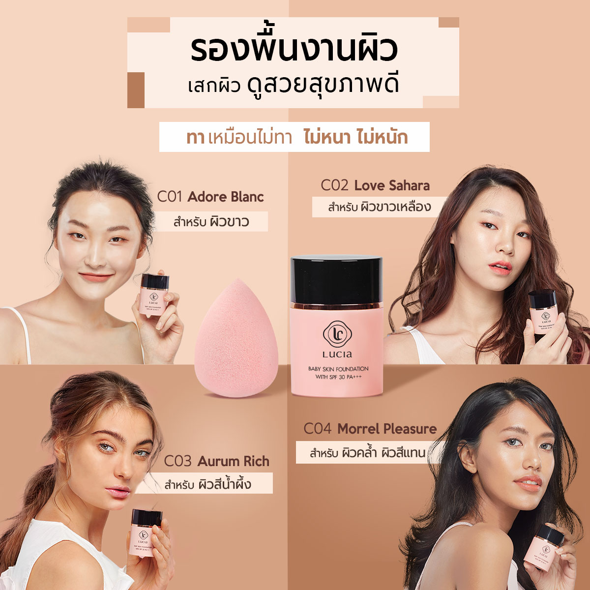 รองพื้นเฉด #C03 สำหรับผิวน้ำผึ้ง/ผิวสองสี Lucia Baby Skin Foundation with SPF 30 PA+++
