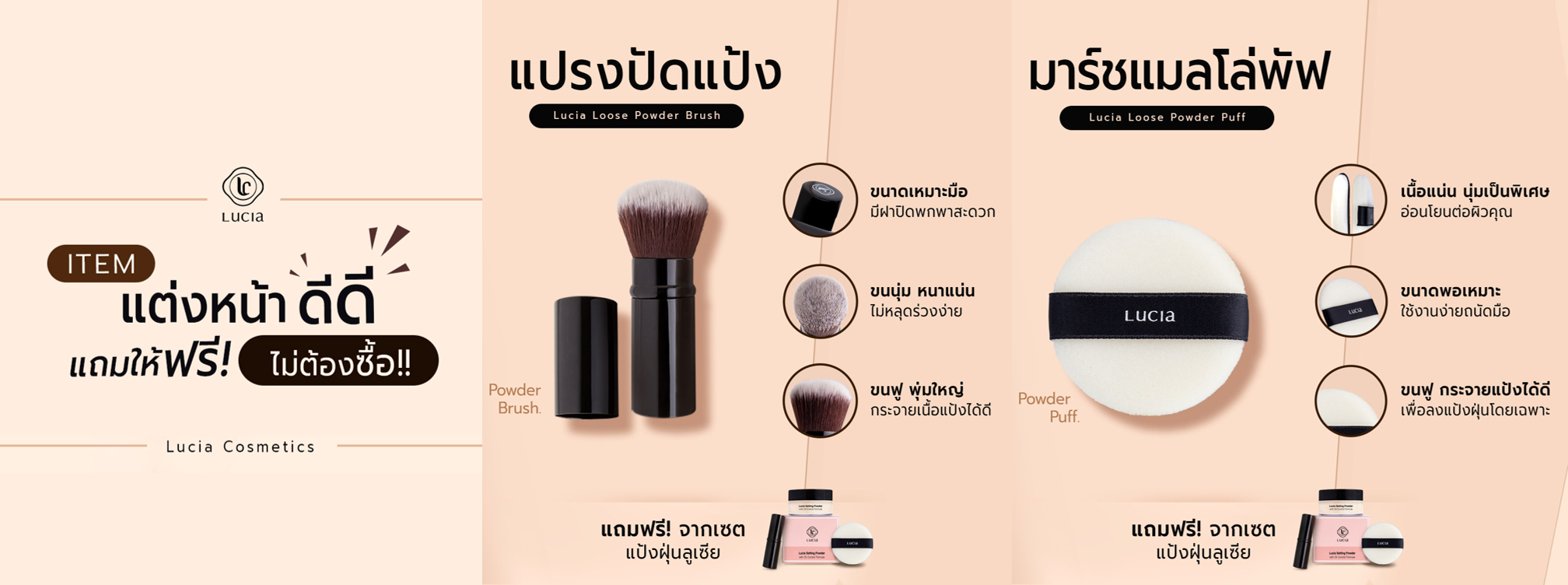 เซตรองพื้นคู่แป้งฝุ่นลูเซีย เฉด #C03 & #T03 สำหรับผิวสองสี/ผิวสีน้ำผึ้ง